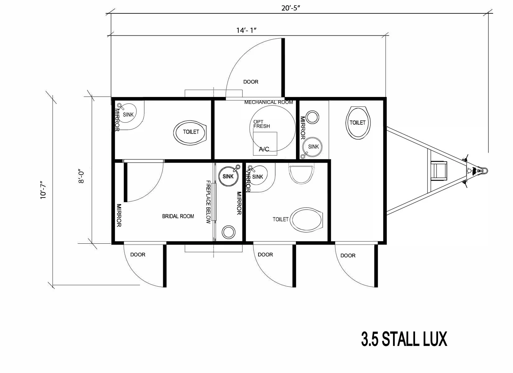 This custom-built powder room consists of three separate suites with separate private entrances. The Powder Room Suite makes this unit ideal for outdoor events requiring attire changes or touch-ups.