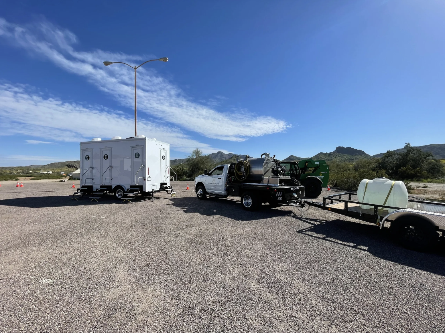 We are the experts at servicing restroom trailers. We have the right equipment and knowledge to pump-out restroom trailers, and deliver potable water. We offer emergency service, weekly, or monthly service.